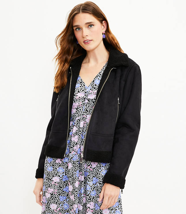 Product Name: Black faux suede aviator jacket clearance