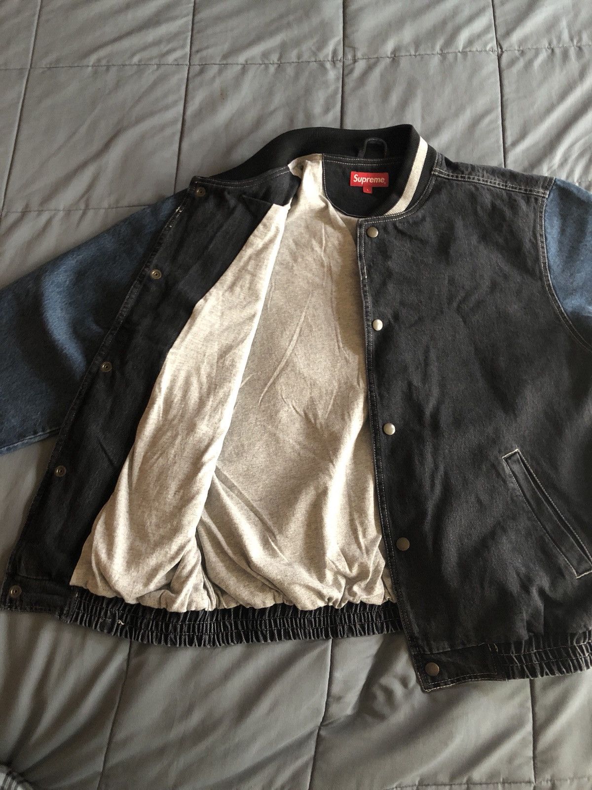 Product Name: Supreme denim varsity jacket black clearance